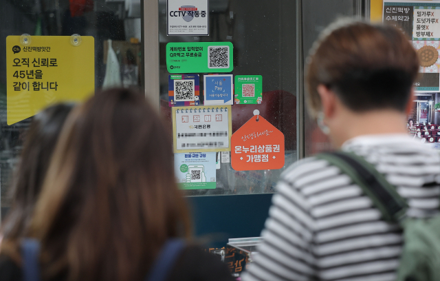 정부가 민생회복 소비쿠폰 1차 지급계획을 발표한 6일 서울의 한 전통시장 점포에 기존 골목경제 소비 활성화를 위한 온누리상품권 가맹 팻말이 붙어 있다. 경기 진작을 위한 이재명 정부의 첫 민생회복 소비쿠폰 신청과 지급이 이달 21일부터 9월 12일까지 8주간 이뤄진다. 연합뉴스