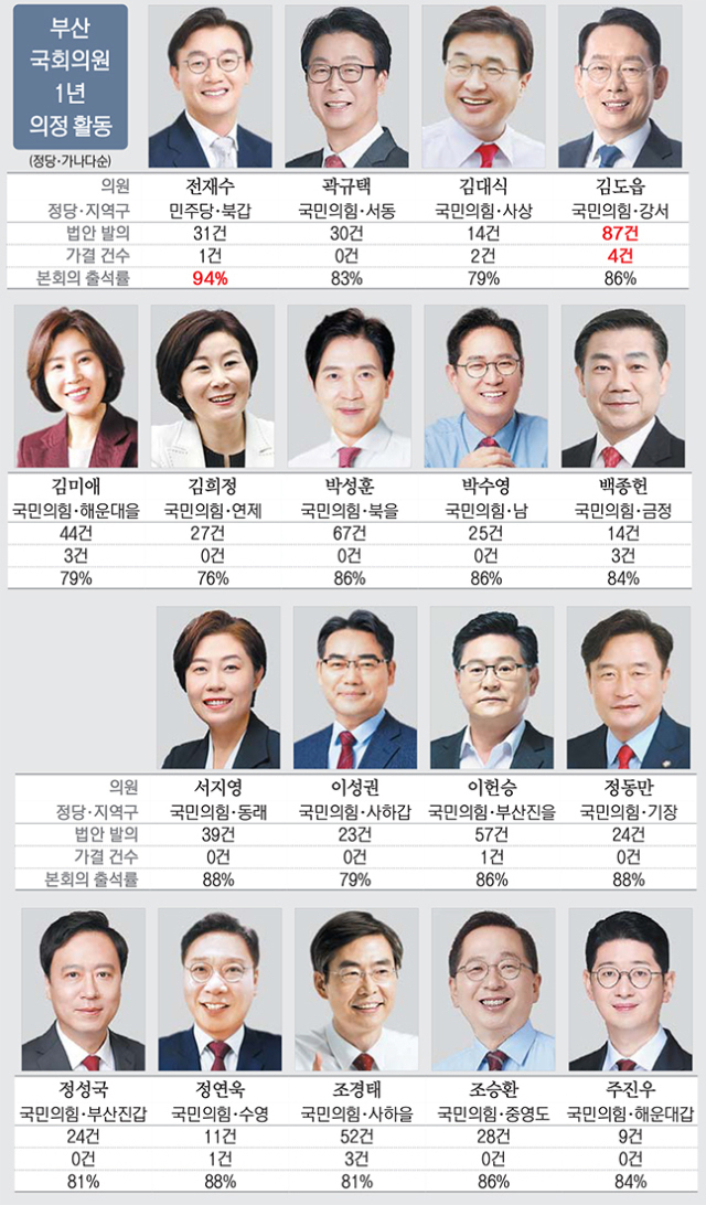 법안 604건 발의, 17건 통과… 가결률 2.8% 저조한 성적표 [22대 부산 국회의원 1년 평가]