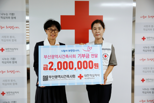 부산건축사회(회장 강미숙)는 지난 8일 대한적십자사 부산지사(회장 서정의)에 성금 200만 원을 기탁하고, 자원봉사자들이 직접 만든 빵을 소외계층에게 전달하는 ‘사랑의 빵 전달’ 봉사활동을 실시했다. 부산건축사회 제공