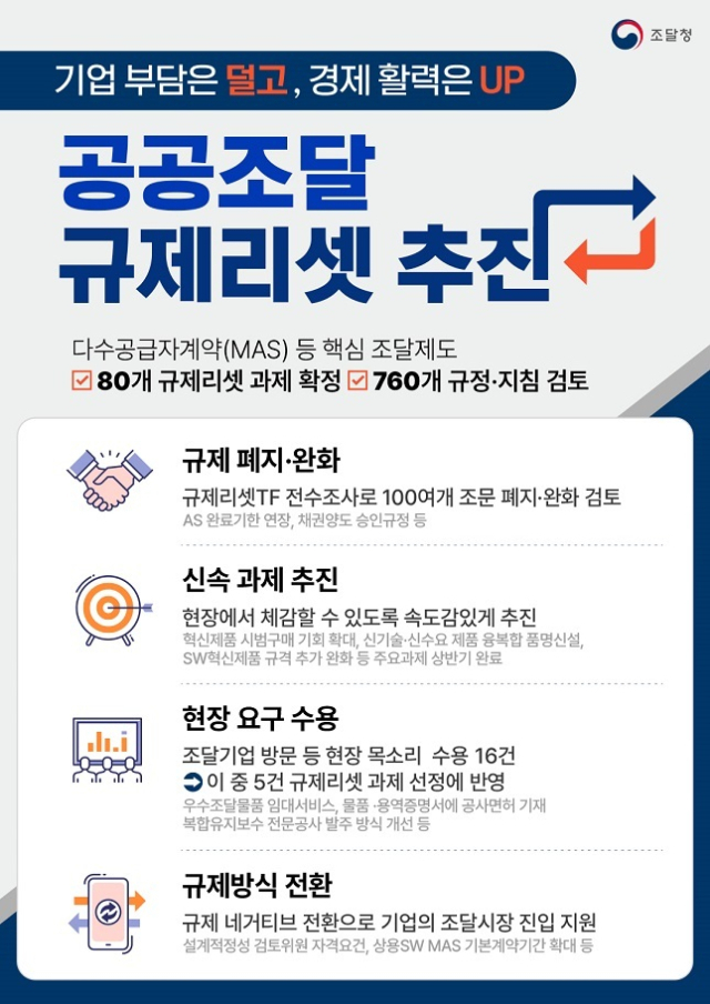 혁신제품 납품실적 요구 대폭 줄인다…조달청, 조달분야 규제개선 80개 확정