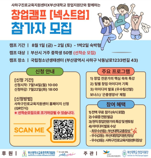 부산 사하구진로교육지원센터는 오는 8월 1~ 2일 양일간 청소년 창업캠프 ‘넥스트업’을 운영한다.