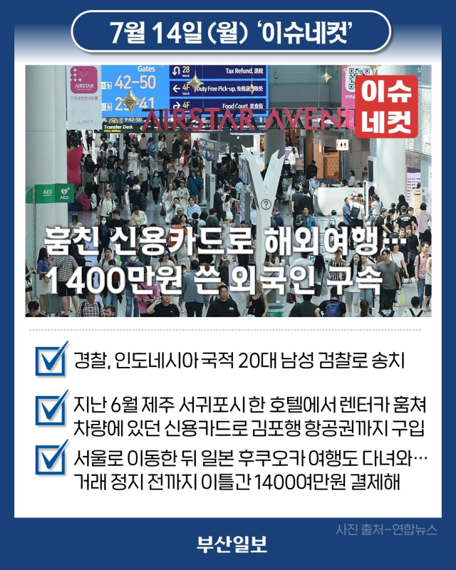 2. 훔친 신용카드로 해외여행…1400만원 쓴 외국인 구속