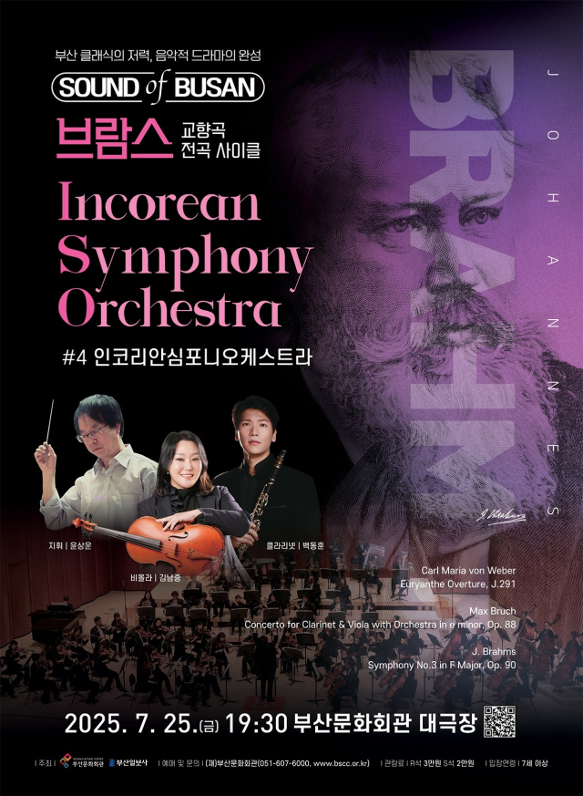 부산문화회관의 2025년 상반기 기획공연 시리즈 ‘사운드 오브 부산 : 브람스 교향곡 전곡 사이클’이 오는 25일 마지막 공연으로 대미를 장식한다.