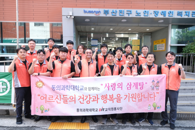 동의과학대학교(총장 김영도) DIT교직원봉사단은 지난 14일 지역 어르신 400명에게 한방 삼계탕 특식을 제공하는 ‘제10회 부산진구 1만 그릇 삼계탕 나눔’ 행사를 펼쳤다.