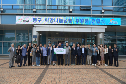 부산 동구(구청장 김진홍)는 14일 동구청 광장에서 동구 희망나눔점빵 후원품 전달식을 진행했다고 밝혔다.