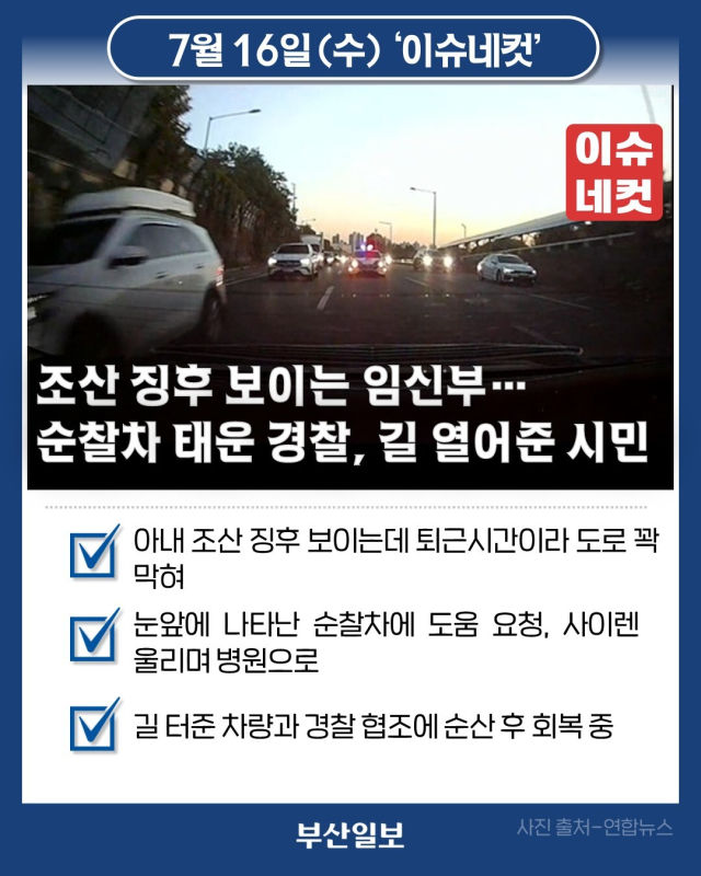 조산 징후 보이는 임신부… 순찰차 태운 경찰, 길 열어준 시민 [이슈네컷]