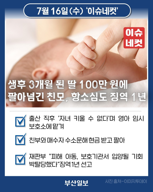 생후 3개월 된 딸 100만 원에 팔아넘긴 친모, 항소심도 징역 1년