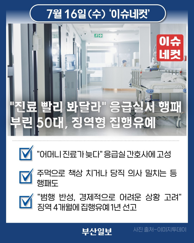 "진료 빨리 봐달라"… 응급실서 행패 부린 50대, 징역형 집행유예