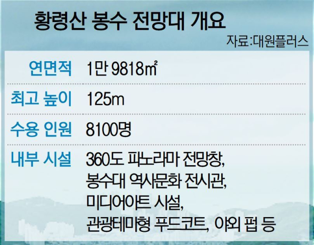 부산시가 16일 황령산 봉수 전망대 조성사업에 대한 실시계획인가를 고시하면서 개발 사업이 본궤도에 올랐다. 황령산 정상에 들어설 봉수 전망대의 조감도. 대원플러스 제공