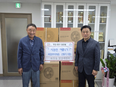 부산 동구(구청장 김진홍) 좌천동은 지난 16일 좌천동 발전애향회(회장: 이현호)에서 폭염으로 어려움을 겪고 있는 지역 내 저소득 독거노인과 취약계층을 위해 선풍기 36대(약 250만원 상당)를 전달했다고 밝혔다.