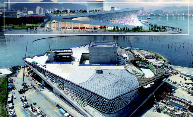 부산오페라하우스의 비정형 파사드가 최근 모습을 드러냈다. 내년 말 준공을 목표로 하는 부산오페라하우스는 현재 전체 공정률이 63%에 이르며, 이 중 파사드 구조체 공사는 이미 95% 정도 진행된 상태다. 이 건축물의 비정형 파사드는 ‘진주를 품은 조개’를 형상화한 곡면 외벽으로, 여기에는 건축물의 부재를 꽈배기처럼 꼬아 건물의 곡면을 형상화하는 트위스트 공법이 적용됐다.