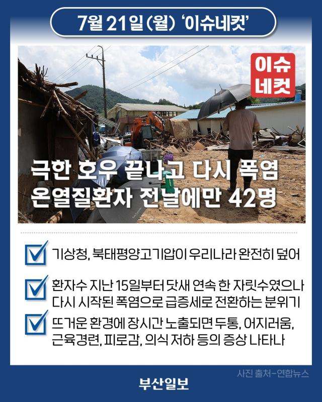 1. 극한 호우 끝나고 다시 폭염…온열질환자 전날에만 42명