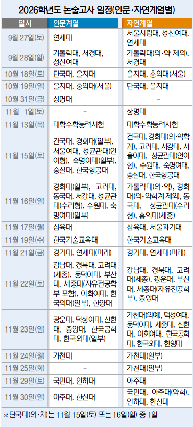 ■수능 전 논술고사 실시 대학 9곳
