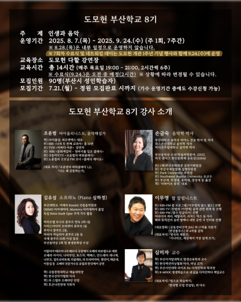 도모헌 부산학교, ‘인생과 음악’을 주제로 8월 7일 개강