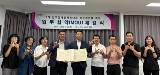 부산광역시 장애인체육회(회장 박형준)는 오는 10월에 개최될 제45회 전국장애인체육대회와 제20회 전국장애학생체육대회, 2027년 전국장애인생활체육대축전의 성공적인 개최를 위한 수어통역 서비스 제공 업무협약을 체결했다고 밝혔다.