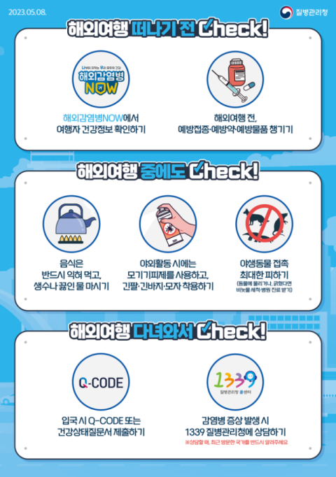 각종 해외감염병에 대한 정보는 '해외감염병나우(NOW)' 누리집(해외감염병NOW.kr)과 '여행건강 오피셜'(travelhealth.kr)에서 확인할 수 있다.