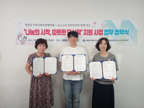 부산 동래구 명륜동 행정복지센터(동장 홍향숙)는 28일 명륜동 지역사회보장협의체(민간위원장 김분숙), 오노고로&키치마루(대표 김정훈)와 함께 ‘나눔의 시작, 따뜻한 도시락’ 지원 사업 추진을 위한 업무협약을 체결했다고 밝혔다.