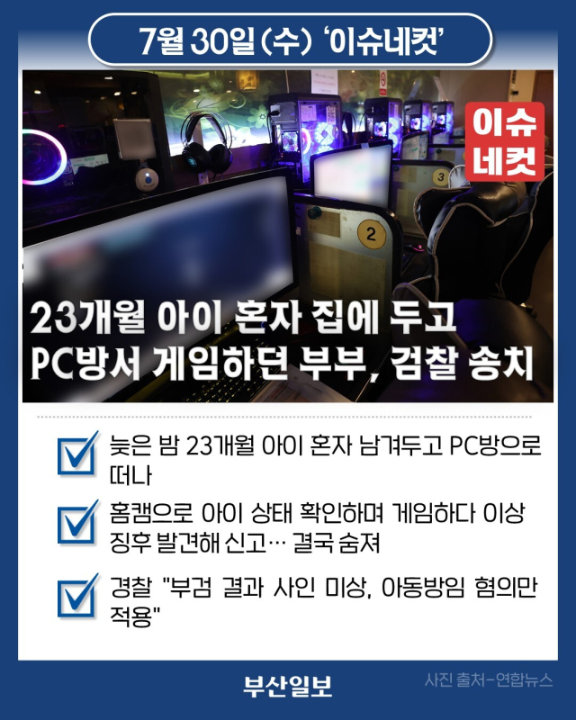 23개월 아이 혼자 집에 두고 PC방서 게임하던 부부, 검찰 송치 [이슈네컷]