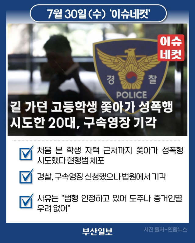 길 가던 고등학생 쫓아가 성폭행 시도한 20대, 구속영장 기각