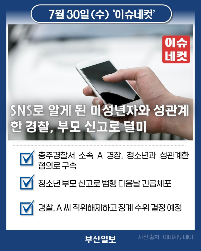 SNS로 알게 된 미성년자와 성관계 한 경찰, 부모 신고로 덜미