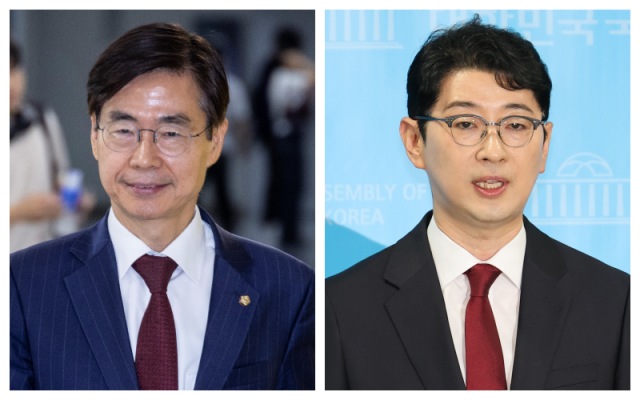 국민의힘 당 대표 선거에 출마한 조경태 의원(왼쪽)과 주진우 의원. 연합뉴스