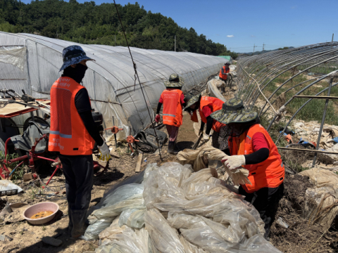 이날 동구자원봉사센터에서는 복구활동에 참여한 봉사자들을 위해 응원의 간식 키트를 준비해 따뜻한 마음을 전했으며, ㈜코레일유통 부산경남본부에서 후원한 이재민을 위한 후원물품을 전달했다. 이어 비닐하우스 비닐 교체 및 내부 정리, 토사물 제거, 바닥 흙청소 등 복구 작업에 힘을 보탰다.