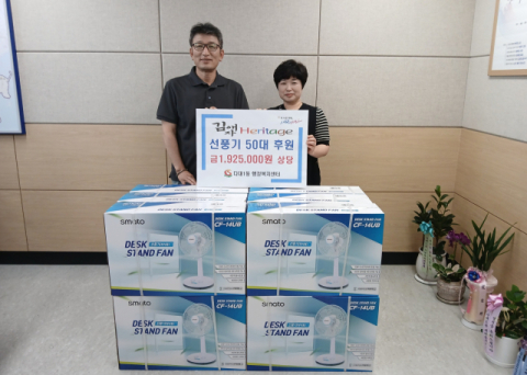 ‘김애자 Heritage’는 지난 1일 부산 사하구 다대1동 폭염에 취약한 저소득층을 위한 선풍기 50대(190만 원 상당)를 후원했다고 밝혔다.