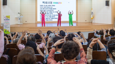 ‘두드리고(go), 힐링하고(go), 소통하고(go)’라는 주제로 진행된 이번 프로그램은 관내 65세 이상 어르신 140명을 대상으로 노래와 율동, 맨손체조, 건강 상식 배우기 등 노인 생활체육 체험과 강연으로 구성하여 참가한 어르신들로부터 뜨거운 호응을 받았다.