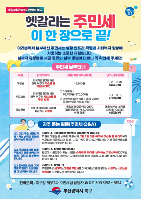 부산 북구, '8월은 주민세 납부의 달'… 헷갈리는 주민세 적극 홍보 나서