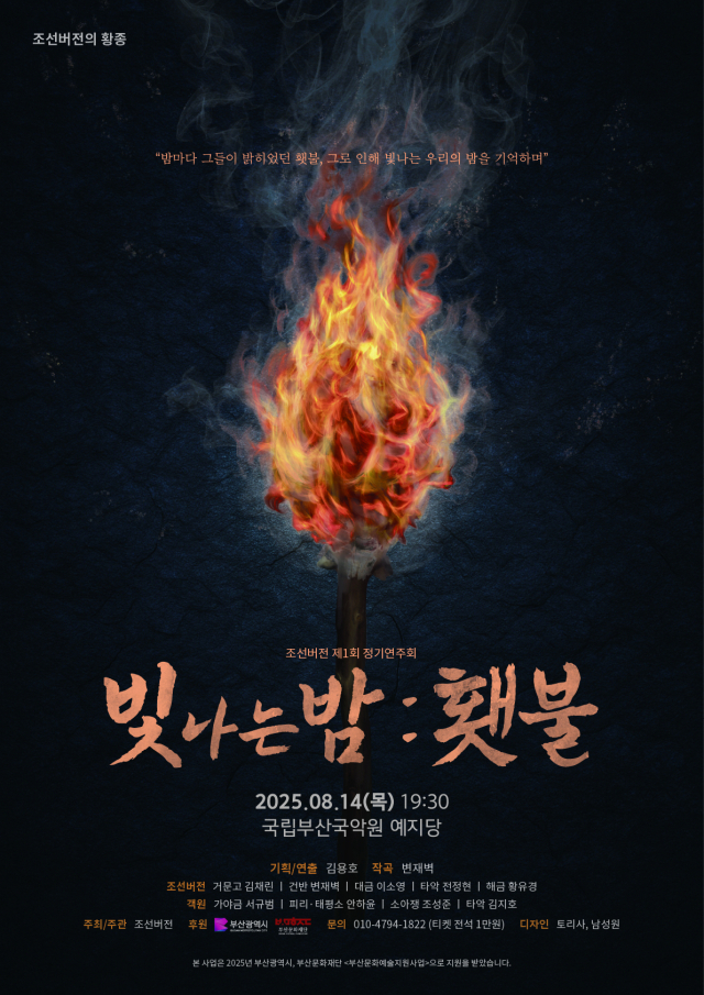 창작국악단체 ‘조선버전’은 오는 14일 첫 번째 정기연주회 ‘빛나는 밤: 횃불’을 무대에 올린다. 광복절을 하루 앞두고 열리는 이번 공연은 독립운동가들의 숭고한 삶과 정신을 국악 창작곡으로 풀어낸 창의적 무대로 기대를 모은다.