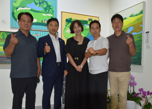 이번 초대전에는 또우 외에도 개성 있는 작가들이 참여했다. 박춘일 작가는 오랜 시간 삶의 굴곡을 지나며 그림은 잊혀졌던 본 연의 자아를 회복하는 여정이자 치유의 도구였다며, 젊은 시절 귀금속 사업에 몰두하다 골프장에서 마주한 자연의 경이로움 속에서 다시 붓을 들게 되었고 , 늦은 나이에 그림을 통해 새로운 삶의 빛을 찾았다고 전했다. 작품은 도시의 소란과 현실의 무게를 잠시 내려 놓고 자연이 주는 고요한 에너지와 감동을 담아낸 시각적 일기이다. 특히 골프장의 풍경과 계절의 색채는 제 내면의 감정을 투영하는 중요한 모티브가 되었다. 박 작가는 아크릴 물감을 날카로운 나이프를 이용해 수만 번 칠하기를 반복하는 중첩 기법으로 작품을 완성했다.