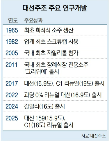대선주조 관계자는 “소주 소비 트렌드 변화를 따라가면서도 대선 고유의 맛을 잊지 않기 위해 다양한 연구개발을 진행해 오고 있다”고 말했다.
