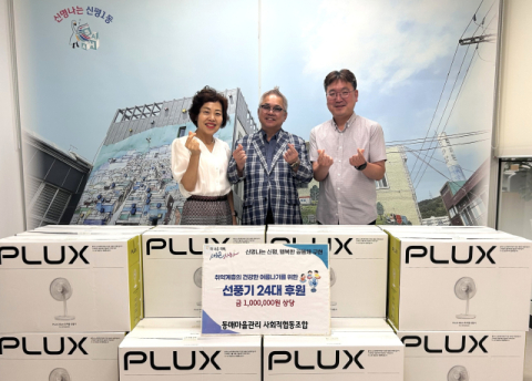 부산 사하구 신평1동 동매마을관리 사회적협동조합은 11일 신평1동 행정복지센터에 100만 원 상당의 선풍기 24대를 기탁했다고 밝혔다.