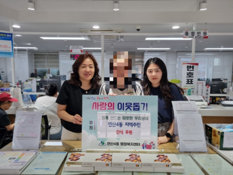 한편 연산4동은 ‘연나리 희망지킴이 프로젝트’, ‘연나리 안심콜 사업’ 등 다양한 복지사업을 추진하며 복지사각지대 예방 및 지역사회 인적안전망 구축에 최선을 다하고 있다.