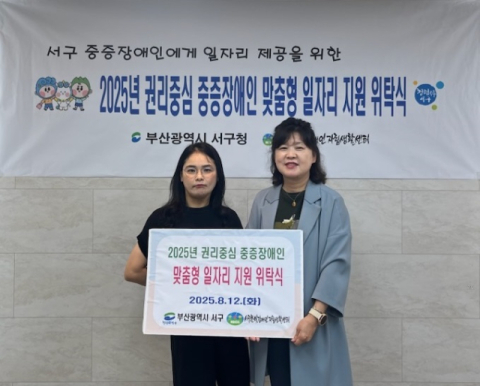 부산 서구(구청장 공한수)는 12일 서구한빛장애인자립생활센터(센터장 김은정)와 2025년 신규사업으로 ‘권리 중심 중증장애인 맞춤형 일자리 지원사업’ 위탁을 체결했다.