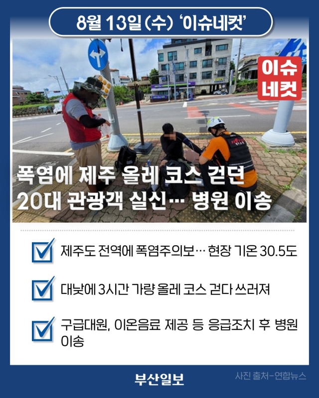 폭염에 제주 올레 코스 걷던 20대 관광객 실신… 병원 이송