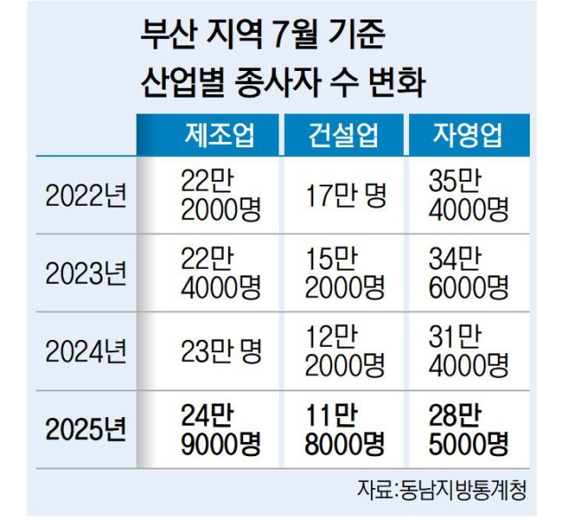 부산 자영업·건설업 종사자 감소세, 제조업 증가세 지속