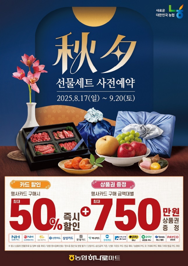 농협은 다가오는 추석 명절을 맞아 8월 17일부터 9월 20일까지 전국 농협하나로마트에서 추석 선물세트 사전예약 행사를 실시한다고 17일 밝혔다.