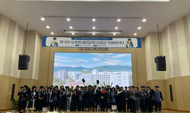 부산가톨릭대학교(총장 홍경완)는 지난 14일 베리타스관 대강당에서 2025학년도 대학원 및 학부 과정의 외국인 유학생 중 학위 수여 대상자 53명을 위한 졸업식을 개최했다.