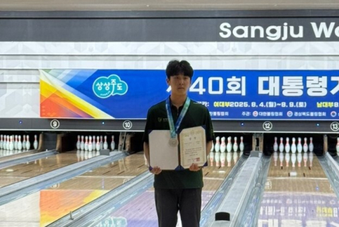동명대는 볼링팀 최준호선수(스포츠재활학과)가 (사)대한볼링협회 주최로 지난 10~17일까지 상주시 월드컵볼링장에서 열린 제40회 대통령기 전국볼링대회 남자대학부 마스터즈 경기에서 준우승을 차지했다고 밝혔다. 최준호 선수는 대회에서 엄지손가락 부상에도 투혼을 발휘해 10게임 총점 2365점(평균236,5점)으로 은메달을 획득했다.