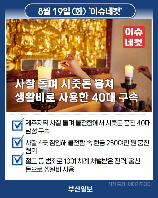 사찰 돌며 시줏돈 훔쳐 생활비로 사용한 40대 구속