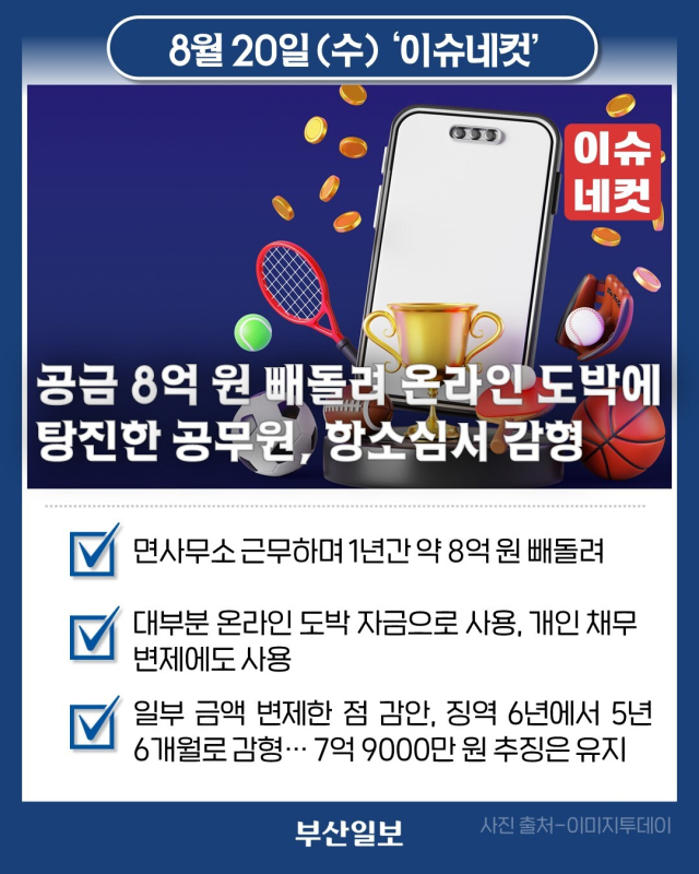 공금 8억 원 빼돌려 온라인 도박에 탕진한 20대 공무원, 항소심서 감형 [이슈네컷]