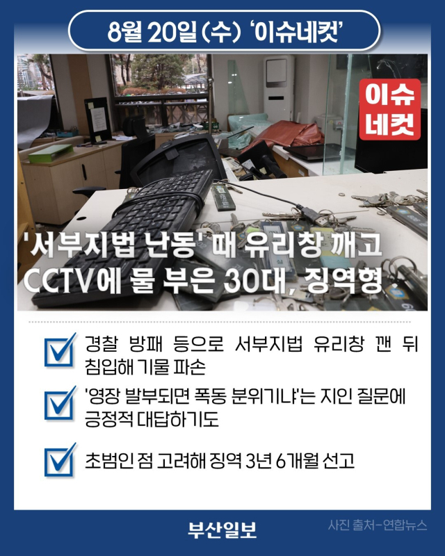 '서부지법 난동' 때 유리창 깨고 CCTV에 물 부은 30대, 징역형