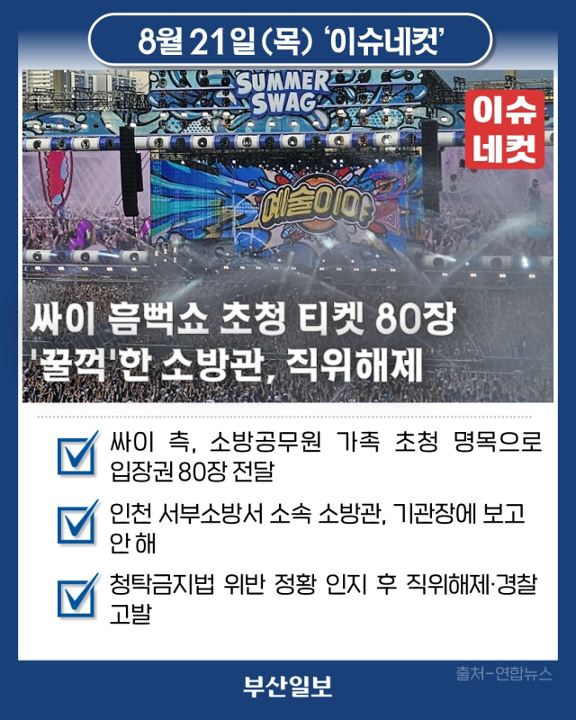 싸이 흠뻑쇼 초청 티켓 80장 '꿀꺽'한 소방관, 직위해제 [이슈네컷]