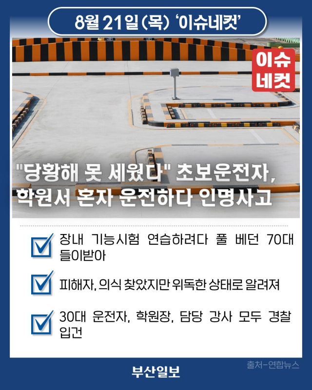"당황해 못 세웠다" 초보운전자, 학원서 혼자 운전하다 인명사고