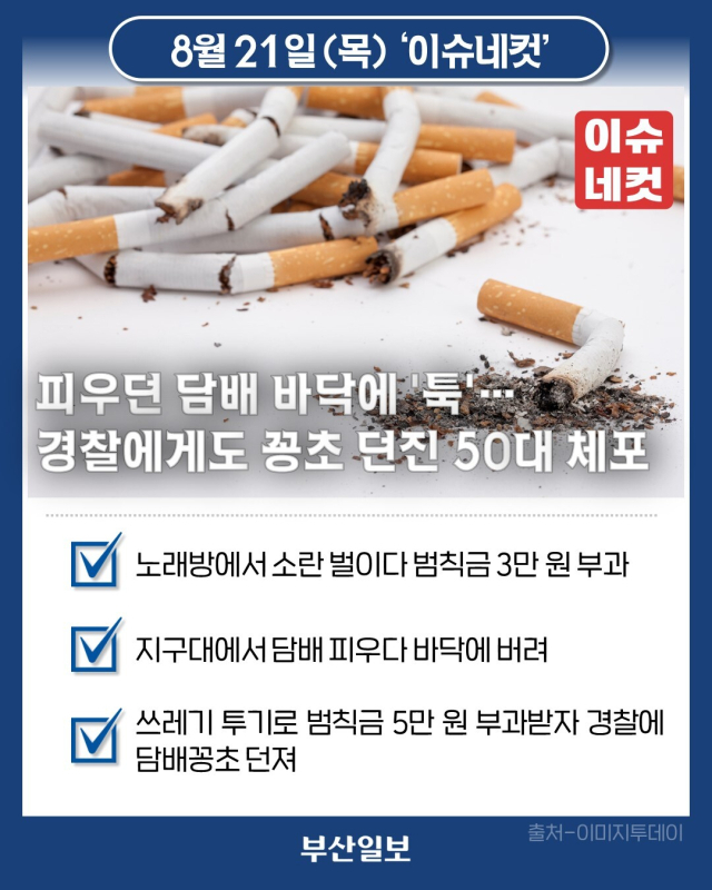 피우던 담배 바닥에 '툭'… 경찰에게도 담배꽁초 던진 50대 체포