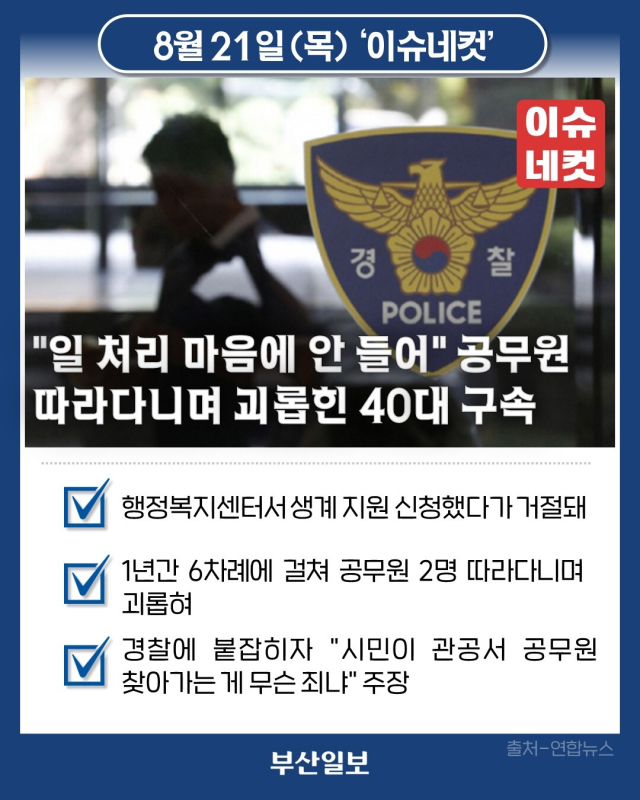 "일 처리 마음에 안 들어" 공무원 따라다니며 괴롭힌 40대 구속