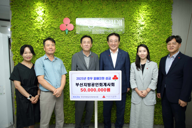 부산지방공인회계사회(회장 정일)는 지난 19일 부산사랑의열매 사무국에서 2025년 호우 피해 특별성금 5000만 원을 부산사회복지공동모금회(회장 이수태·부산사랑의열매)에 전달했다.