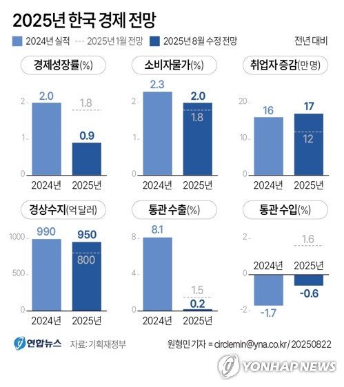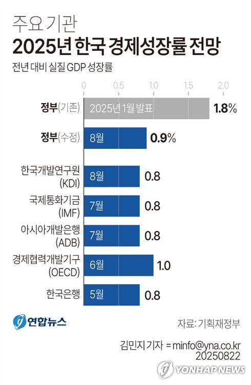 지난 1월 발표한 '2025년 경제정책방향'의 1.8%에 비하면 약 8개월 만에 0.9%P를 낮췄다.