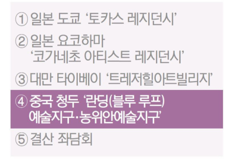 일본(토카스 레지던시·코가네초 아티스트 레지던시)과 대만(트레저힐아티스트빌리지) 사례와 달리 중국에선 개인 창작 스튜디오가 모여 있는 예술촌과 레지던시 등을 돌아보면서 부산의 홍티아트센터가 하나로 그칠 게 아니라 두서너 개로 늘어나 예술지구(촌)를 형성하게 되면 지금보다는 훨씬 더 나은 예술 생태계를 구축하지 않을까 상상했다. 인구 1000만 명 이상에, GDP 1조 위안 이상인 베이징-상하이-광저우-선전과 같은 ‘1선 도시’만큼은 아니지만, 최근 빠르게 성장하며 1선 도시의 잠재력을 가진 ‘신(新) 1선 도시’의 맹주 중국 청두를 다녀왔다.